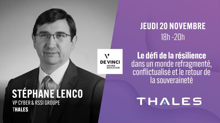Le Pôle Léonard de Vinci accueille jeudi 20 novembre une intervention de Stéphane Lenco, Vice-President Cyber et RSSI Groupe chez Thales, parrain de la promotion 2025.